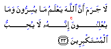 "There is no doubt that Allah knows what they keep secret and what they make public. He does not love people puffed up with pride."