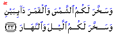 Some think that this verse means that the forces of nature have been placed under the control of man. Such an assumption leads people to develop a variety of odd ideas. Some even go so far as to say that to achieve mastery over the heavens and the earth is the true end of man's existence. Almost all classical commentators agree that God's having made the natural phenomena 'subservient' to man is a metaphor for His having enabled man to derive lasting benefit from them. God has bound them to laws which are beneficial for mankind. Had sailing in the sea not been subject to any law, it would not have been possible for man to undertake sea voyages. Had the rivers not been subject to any laws, man could not have used them for irrigation. Likewise, had the sun, the moon, the day and the night not been regulated, there could have been no life on earth, let alone any flourishing human civilization. Source: |