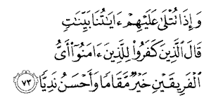 "When Our revelations are recited to them in all their clarity, the unbelievers say to those who believe: 'Which of the two sides has a better position and a superior community?'"