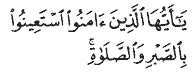 "O you who Believe, seek strength in Patience (Sabr) and Prayer (Salah). God is with those who are patient."