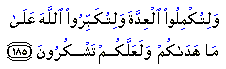 "And (Allah desires) that you should complete the period (of fasting), and that you should magnify Allah (saying 'Allahu Akbar') for having guided you, and that perchance you may be thankful."