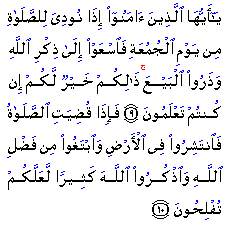 Al-Jumuah (The Congregation) Sura 62: Verses 9-10