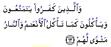 "Those who disbelieve, take their comfort in this life and eat even as the cattle eat, and the Fire is their habitation."