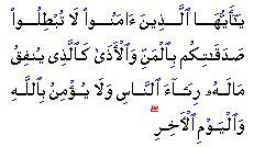 "O you who have attained to faith! Do not deprive your charitable deeds of all worth by stressing your own benevolence and hurting [the feeling of the needy], as does he who spends his wealth only to be seen and praised by men, and believes not in God and the Last Day."