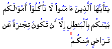 "Believers! Do not devour one another's possessions wrongfully; rather than that, let there be trading by mutual consent."