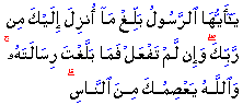 O Messenger, deliver that which has been sent down to you from your Lord. If you do not, you will not have delivered His Message. God will protect you from men.