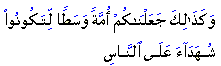 "You are a community (Umma) of the middle way, so that you may be witnesses before Humanity."