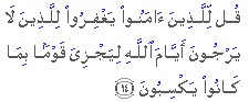 Some other commentators have regarded this verse as repealed. They say that this command was applicable only till the Muslims had not been give permission to fight. Then, when they were given permision to fight, this command became abrogated. But a careful study of the words of the verse shows that the claim about abrogation is not correct. The word "forgive" is never used in the sense that when a person is not able to retaliate upon another for the latter's excesses, he should forgive him, but on such an occasion the usual words are patience and forbearance. Instead of them, when the word "forgive" has been used here, it by itself gives the meaning that the believers, in spite of their ability for retaliation, should refrain from retaliating upon the people for their excesses, whom fearlessness of God has made to transgress all limits of morality and humanity. This command does not contradict those verses in which the Muslims have been given the permission to fight. Permission to fight pertains to the condition when the Muslim government has a reasonable ground for taking military action against an unbelieving people, and the command concerning forgiveness and pardon pertains to the common conditions in which the believers have to live in contact with a people who are fearless of God and have to suffer persecutions from them in different ways. The object of this command is that the Muslims should keep their moral superiority and should not stoop to the level of the morally inferior people by indulging in disputes and wrangling with them and resort to retaliation for every foolishness As long as it is possible to respond to an accusation or objection gently and rationally, or to defend oneself against an excess, one should not refrain from this, but when things seem to be crossing these limits, one should hold one's peace and entrust the matter to Allah. If the Muslims themselves become involved in a fight or quarrel with them, Allah will leave them alone to deal with them; but if they forgive and forbear, Allah will Himself deal with the wicked people and reward the oppressed ones for their patience. Source: |