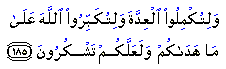 "And (Allah desires) that you should complete the period (of fasting), and that you should magnify Allah (saying "Allahu Akbar") for having guided you, and that perchance you may be thankful."