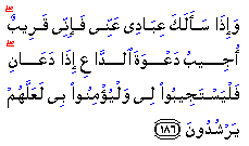 "And when My servant ask you concerning Me, then verily I am near, I answer the prayer of the supplicant when he calls on Me, so they should answer My call and believe in Me, so that they may walk in the right way."
