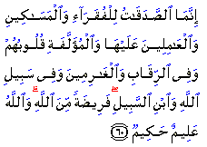 "As-Sadaqat (here it means Zakat) are only for the Fuqara and Al-Masakin and those employed to collect the (funds); and to attract the hearts of those who have been inclined (towards Islam); and to free the captives; and for those in debt; and for Allah's Cause, and for the wayfarer; a duty imposed by Allah. And Allah is All-Knower, All-Wise."