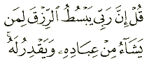 "Say: Verily, my Lord grants provision abundantly to whomsoever He pleases and straitens it for whomsoever He pleases."