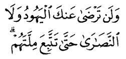 "The Jews and the Christians will not be pleased with you unless you following their religion [milla]."