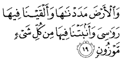 "And the earth We have spread out, set thereon heavy mountains, and We have caused to grow in the earth all kinds of crops in due [proportion and] balance."