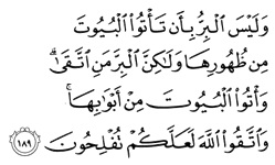 "It is not virtue if you enter your houses from the back. It is virtue if you fear Allah. Enter houses through proper doors and fear Allah so that you may prosper."