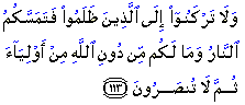 And incline not to those who do wrong, or the Fire will seize you; and ye have no protectors other than Allah, nor shall ye be helped.