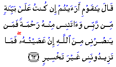 He (Salih) replied, "O my people! do ye see? if I have a Clear (Sign) from my Lord and He hath sent Mercy unto me from Himself, who then can help me against Allah if I were to disobey Him? What then would ye add to my (portion) but perdition?"