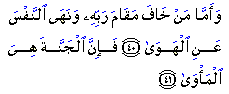 "But unto him who shall have stood in fear of his Lord's presence, and held back his inner self from base desires, paradise will truly be the goal."